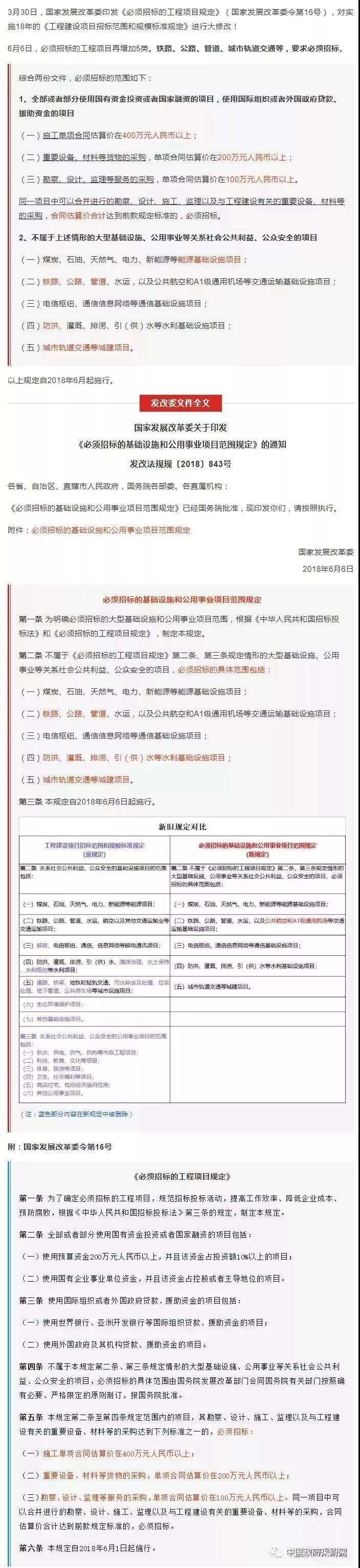 多个省市政府集中采购公开招标限额直接从200万上调至400万!文末附最新版《必须招标的工程项目规定》(国家发展改革委令第16号)全文解读!